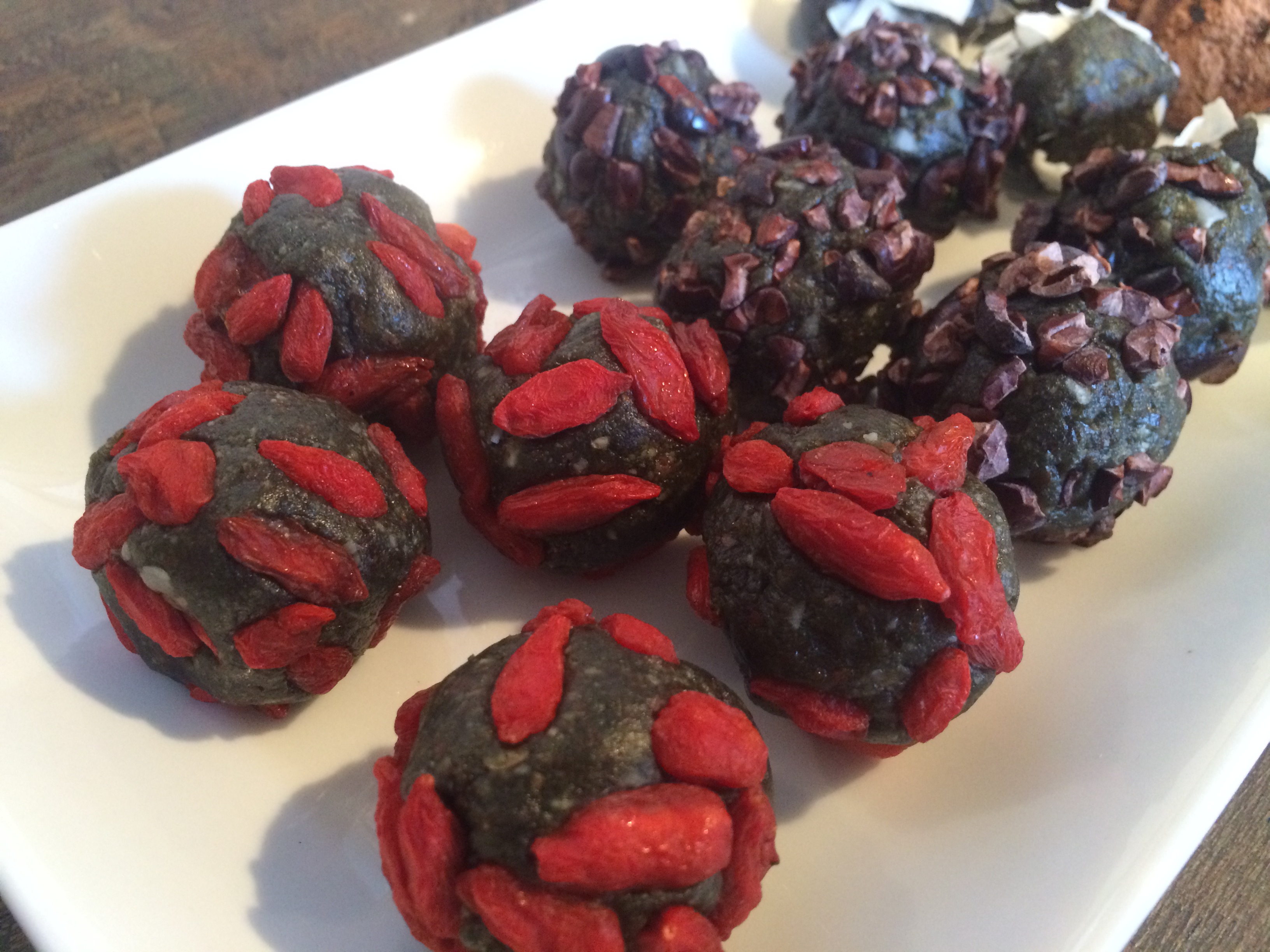 You can also play around with toppings to roll the “docinhos” . My favorites are cacao powder, cacao nibs, goji berries, and coconut. Feel free to come up with your own!